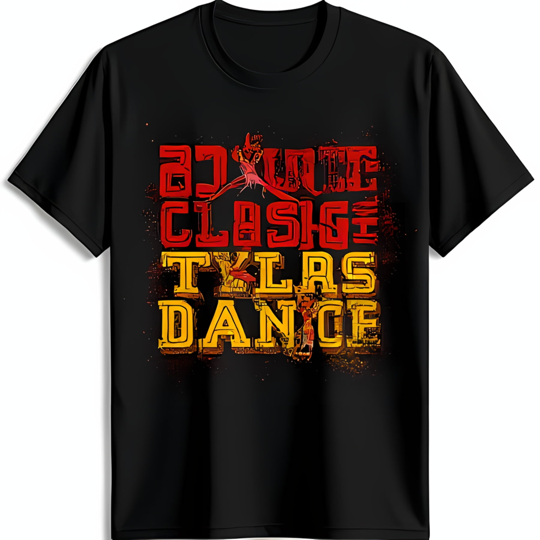 Black T-Shirt with Vibrant Red & Yellow Classic Tylers Dance Design Featuring Dancers